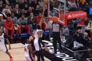 夸张!布泽利斯非常努力高抛了 文班照样给你拍掉