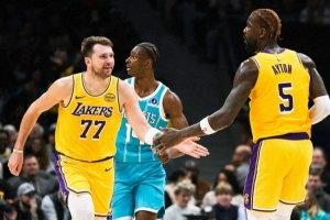 得心应手!湖人官方晒赢球海报 东契奇和艾顿击掌登上封面