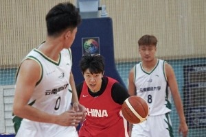 中国女篮昨日与云南财大男篮进行教学赛 最终以95比86取胜